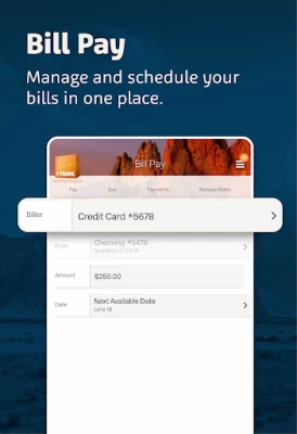 The app is well thought out and works well, except the known issues of stalled or slow startup, and fingerprint capture. Mobile deposit is awesome. Text notifications are so important. Let's me know if WE have a problem, which 1st Bank has always solved. Sending money is silly easy. Bill pay is better online, but maybe that's just me. I know this review is about the app, but I want to state the people at 1st Bank Surprise AZ are just wonderful! The phone support is also great, always helpful.