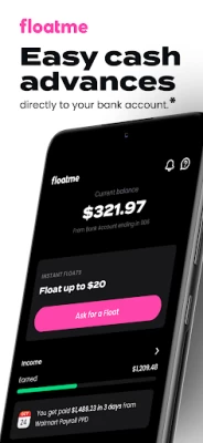 If you need just $20 here and there it's a good app. For instant money tho they charge a $4 fee on top of the $20 to pay back for $24 total to pay back when things are due. Typically you have two weeks to pay it back. You also have to pay a monthly subscription in addition but it's a pretty low membership fee. You won't get to do a second "float" until the first one is paid tho...it's not a bad system if you just need $20 like just to get to pay day or when you are in a jam. I like it tho.