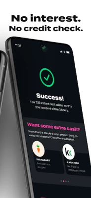 This app is okay for a very small cash advance. The good thing is, their system coordinates your next payday accurately for the repayment. The $4.00 instant delivery fee should be less on a $20 cash advance, but you do have the option for free delivery if you're able to wait 2-3 days. To date I've received three Advances of $20 each time and I'm wondering if they have a tier level that allows increased cash advances; based on on-time repayments.