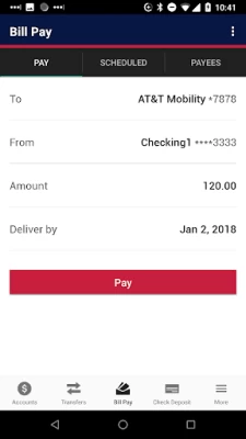 I like the app. I use it all the time to watch my accounts and transfer money. Things I wish changed; The info bar of last log in time and date, shows up at the bottom of the screen, stays there for just too long. It covers the bottom account info. I don't like having to wait for it to eventually go away. This could be moved to be under "more" options. The other thing is (and probably nothing can be done about it) I can't transfer money after 9:00pm.