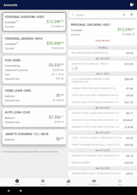 Does what it's supposed to do. Big improvement on the old style. Login can be a little finicky, but it seems to be getting better with updates. Only thing I would just do away with is that it identifies your account by how much is in there, as opposed to the last four #s of the account. And it's in really big numbers, so whenever you're doing anything that requires switching between accounts or depositing a check, the amount of money you have is on display for everyone around you to easily see.