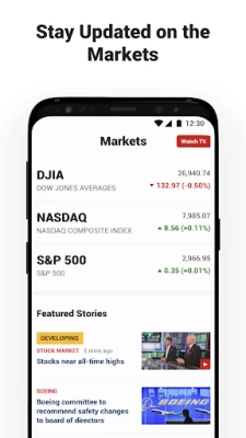 No option to create watch list for the stocks i am interested in? This is a must for a business app to track stocks. In addition to that there is no way to search the stocks i am interested in. One more issue is when i click on the 3 major stock indeces (only those 3 available BTW) it leaves the app and work from browser. But i love the design and promptness of the news.