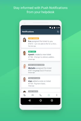 *Update* The biggest drawback on this app is the notifications. Even when following all directions from Freshdesk it often takes 30 minutes or more for my phone to get a notification of a new ticket. Some of my co-workers are unable to receive notifications at all. *Original Review* Awesome set up. I loved that it checked with me when I accidentally pushed send on an email that I said "I have attached ..." And never attached a file to.