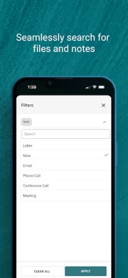 Stay organized and informed: • Keep files and notes organized in a centralized location • Seamlessly search for files and notes with flexible filtering options • Add notes on the go with the option to save file attachments • View the full content of files and meeting notes