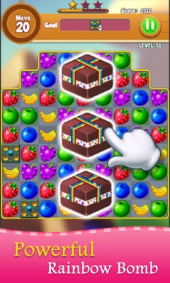 π CRUSH and swap candy fruits to complete each stage! Matching sweet fruits are very satisfactory so fulfil your free time with this free match three puzzle game. Be the most delicious and sweet fruit star that may be in this forest wonderland. π