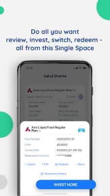 2023 review: I was trying to invest funds in existing MFs. Added those to basket but later it was difficult to get the link to go to basket. Pathetic layout. Layout looks okay but not user-friendly at all. 2022 Review: User interface of this app looks old and not smart. No information on total portfolio's annual growth. No information on the status of fund invested or transacted untill it get reflected in your account. Customer care is not very supportive when asked for call request.