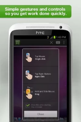 Needs a lot of work! Have to restart the app continuously. Multiple screens don't display properly, as they would on a Windows machine. Very difficult to use... Only reason I'm not giving 1 star is that you can still access the host PC, even though it's difficult to use