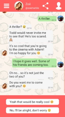 Very cute interface... but that's about it for me. The first two chapters are really bland, and it seems like the (very similar) choices don't matter at all. Each uneventful chapter is extremely short, and in order to play the next one, you have to either wait a whole day or cough up some cash/coins. The story doesn't even come close to being interesting enough to motivate me to do either of these things, so I've uninstalled the app already. There are plenty of better CYOA stories out there. 🤷