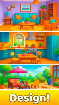 An easy-to-learn puzzle where you have to guess merge items for home design. Relaxing music and simple gameplay. Complete orders and merge items.