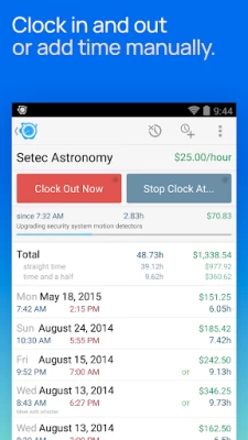 I love this app! I work two jobs and it keeps track of how much I've worked at each job, as well as how much I can expect to be paid. Is a real life-simplifier - a great time-management tool. Very intuitive. If i need to correct something, i just click and boom i can fix it. No complicated menus - And I'm just using the free version! I RECOMMEND THIS APP TO EVERYONE. No, really, I do :)