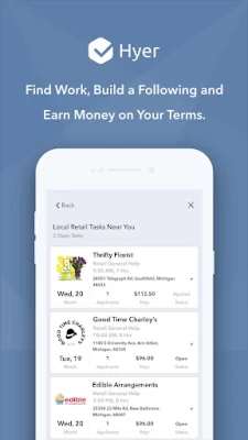 I like the flexibility of this job. Unlike some of the reviews about last minute opportunities, get ahead of that and be proactive. There are filters you can use such as, Location, Days, and The Task, although the filters don't save for you, only when your searching. There is no commitment if you want to sign up and look around the app. I am happy that I did.
