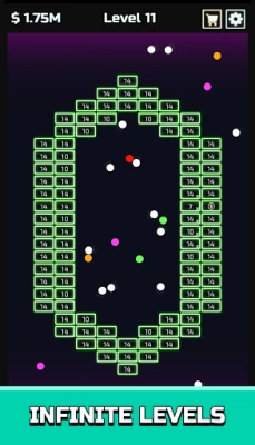 I love this game: other than needing to pay close attention for bonuses, it kind of runs on AUTO with few mandatory ads..AND has pleasant and relaxing background music! To start, you receive only one slow ball which has little power..BUT, the fun occurs as you build coins, buy more balls with cool "abilities", increase their speeds and their power/damage. Developers: please add some aspect(s) that help new players, such as tutorials or FAQs..I found the first few levels very confusing!