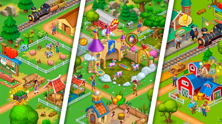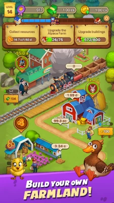 Like the game, but you can only collect so much from the trolley at one time. I'm on level 7 with about 4 farms not being collected except every couple days when the gold trolley comes by. Then the coins still just sit due to the train. Also need an explanation as to what the extras like the conveyor belt, feeder, etc actually do so we can decide if we would like to spend our coins to purchase since cards for upgrades for those items are pretty scarce.