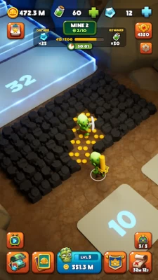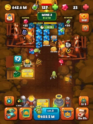 Its a good game compared to gold and goblins with a few more things to do, but theres just two things that bug me first theres too much cluter on the screen sometimes it doesnt let you activate mines especially in higher mines, second is the 15 minute boost its so random there no way to set up for it, most of the times it comes out when your with in seconds of finishing a rock or chest, making it pointless and you cant save them, it would be better in the small prize wheel