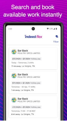 Lackluster experience. As others have said, the app does not seem to function correctly. Clocking in and out never worked for me. Another concern is an obvious lack of communication between Indeed and the actual service providers. I signed on to work certain hours and was assured "no problem" yet once at the job, my hours were changed DRASTICALLY (from 4x10 to 6x12) I've got this app, but won't use it anymore until the bugs are worked out, and all parties can get their information straight.