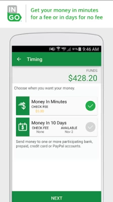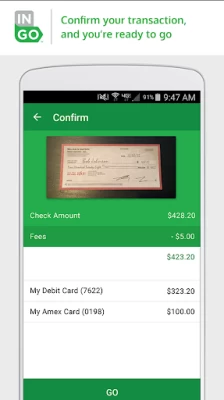 I was Leary at first but this app, this company is awesome. I had a few issues, my fault entirely, customer service was reachable in a timely manner, courteous, and professional. Problems were solved within 2 minutes. It is well worth the fee. I didn't have to drive anywhere. The bank that it was drawn on, Bank of America, gave me a hard time cashing their own check. But Ingo, cashed it hassle free. Very satisfied!