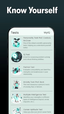 It asks you offer up an opinion very quickly in the app. The questions so far in both tests that I have taken are great for encouraging people to not to overthink the questions but to go with your first thought. The Career Aptitude test was actually very on target for me. I am in the middle of writing a book. Well thought out questions to guide someone towards a career that they would enjoy and want to go to verse the other end of the spectrum.