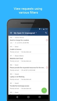 The app is just not intuitive. When compared to the web app. UI is just not user friendly, I feel developers could have done better with this. Cant see who ticket is assigned to until I open it. Same with date request was logged.