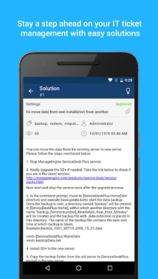 Thanks for this ManageEngine Team! I love that at any point I can quickly add a new request straight from my phone, and review existing tickets and their notes, all without needing my computer. Very convenient on the phone; obviously has less features than the Web interface, but I wouldn't want all that on a 6" device anyway. Quite a responsive app as well, possibly faster than the Web interface. Recommended!