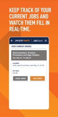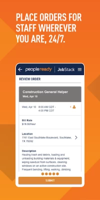 This is a useful tool for tracking orders but I do not recommend placing orders with this app. Orders placed often end up with the wrong office (skilled trades rather than day labor) and the wrong number of workers and the wrong time. The best way to place a PeopleReady order is still to Google the job site address and then use the Google "Search Nearby" feature to find Peopleready. Google Maps correctly distinguishes skilled trade from general labor.Staff generally puts proper details.