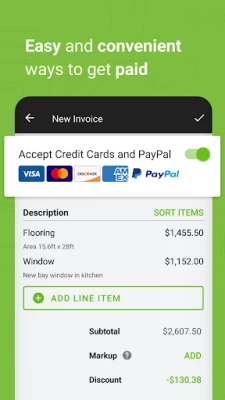 Wasy to use. Very handy on the job site. I personally don't extend credit to my customers. However, if you do they make credit card payments easy as well. Invoicing is a breeze. I would like to be able to turn off all of the individual features features as I need. And would like to be able to apply markups to individual lines rather than the entire estimate.