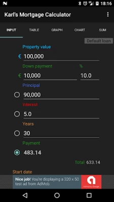 Excellent!!! Use it for a mortgage or any other loan! Nice amortization schedule that allows for extra payments. Useful "sum" tab that shows how much principle/interest you pay throughout the life of the loan. Graphs are also helpful. Best app to calculate loans out there!!!