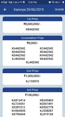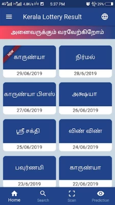 Good App. One Suggetion. Please bring a search bar on top and it needs 4 digit search. Eg: if we enter 6097 in search box and go, it need to show this 4 digits came results. That can be Nirmal, Win win or Akshaya etc. So pepople can easily understand which dates this number came and how many times etc. Previously this feature is available in one lottery app. But new update it is missed.