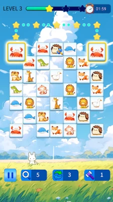 🐱 Tap matching animal tokens like 🐶🐶 or 🐭🐭 to highlight them, then swiftly draw lines between the pairs before time's up! Link more matches in clever ways to earn big combo bonuses in connect games!