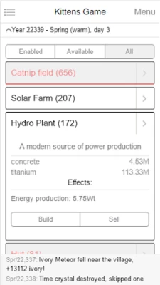 Kittens game is the gold standard for idle progressive games. I've done a handful of others within the genre, but I always come back to the kittens. The developer does an amazing job with Wube level support on the game, and is quick to offer support. While there are a few weird wrapping issues, it's mostly due to phone resolution and such, and not really anything I'd expect an easy solution for. There's a reason this game has been around as long as it has. Get it.