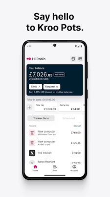 Kroo itself is good, the app isn't great. e.g., Good: they give the best current account interest rate and their standing orders will be sent at weekends. Bad: they try to shoehorn the idea of each payee being a "contact" but don't combine multiple accounts for one person into a single contact, they want you to share all you phone contacts, ad-hoc bank payments need a new reference each time so payments to credit cards, government accounts etc. need the reference entered and checked every time.