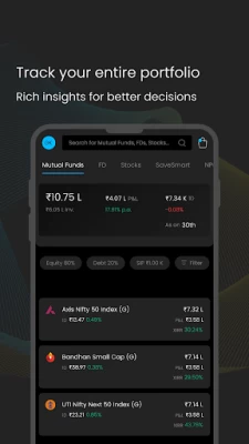 App is really good in terms of UI and ease of use and timely transactions. The only reason I rated 1 less star is because it lacks some of the basic features like: 1. Fingerprint logging 2. Portfolio Update after mkt close 3. STP frequency as offered by AMC 4. Filtering options for the list of mutual funds 5. More MF screening options with data being fetched from renowned sites.