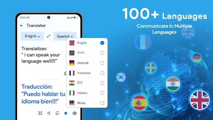 I love really this app it have best features such as common phrases it is awasome easy to use it have conversation and history but i have one problem on it, the app speaker can't talk all languges. So all persons that you want to practice languges please download and use it thanks for app developers.