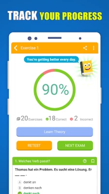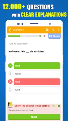 Good app for practicing grammar, though not so much for learning it; I learnt grammar through other sources and use the app for consolidation. A1s (like me) will need Google Translate at the ready because some of the vocabulary is a bit advanced and explanations are given in German. Overall, easy to use and functions well. Does what it says on the box.