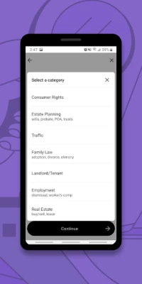 I really like the new updated look of the app and the functions available. Unfortunately, when trying to request a consult through the app, if you select the Traffic option, it automatically acts as if you're submitting a speeding ticket claim, even though the traffic option covers things like accidents too.