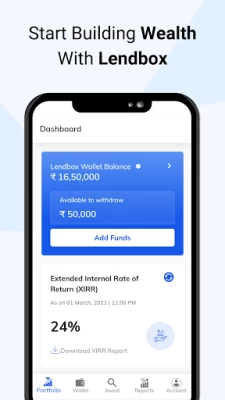 Lending platform is not good at all. They show ads of 25-30% p.a. but that's just vague no. I have registered as an investor. Sharing the problems I face. 1. App don't work good in mobile at all. 2. They show the expected returns are 12% but when you are investing, it will give only half of it, that is 6% 3. In which, when you are investing, Rs. 20 and 1% of amount u invest is fixed as the app service charge, which surely brings down you return to around 4%. Lol Now think again before investin