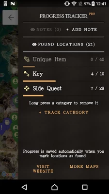 Fantastic map, exactly what you would want to make sure you don't miss things. I am a pro member from the website, but the app refuses to see that, so I'm forced to deal with ads that I paid to remove already..