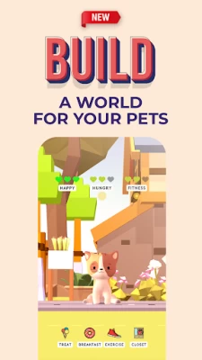 + Add multiple pets + Build a world for your pets + Place items anywhere + Rotate items + Play fun Match 3D games to earn coins + Over 500 items to build + Decorate your room + Add pets to your world