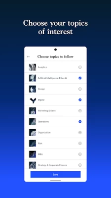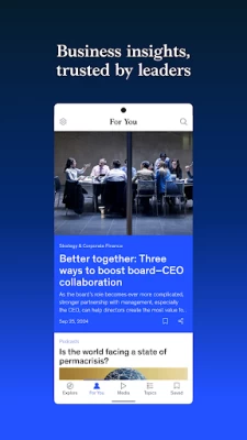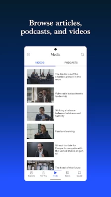 McKinsey offers some well-written, high quality articles. Frequency of publishing has been high which makes this my preferred choice over other consultants' insight apps. However, the app has seen occasional crashes whole opening. Not catastrophic but takes away from the user experience