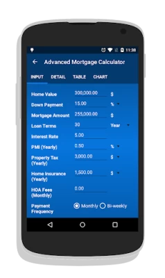 Positives: ability to see detailed payment with various frequency; ability to do "advanced calculation"; color and layout is clear and pleasant to my eyes. Negatives: monthly or bi-weekly extra payment field are put together and not separated; no weekly option; no function to "save calculation" so each time I go back to the app the whole calculation gone and I have had to restart over and input everything again multiple times. There's more suggestions but these suffice for now, if developer will consider including these?
