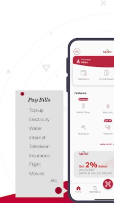 Its work fine for Recharge and free Bank transfer.But I would like to give some suggestion to inprove it more.please provide the "Send & Receive Remittance.",Increase the security of log in authentication while log in from other device., there is limited water supply payment. Add more water supply payment.& Give more % cash back for recharge & others payments.Your response to our feefback will always motivate us to use moru.Thank you for helping us make our dily lives easier in this difficilt su