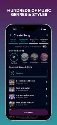 Love this app when it's working, but it's got a really bad habit of glitching out during song generation. It gets stuck in generation mode for hours and hours...even force stopping the app doesn't clear it. Not cool considering I'm a paid subscriber. But, when it does work right it's better than the other apps I've used.