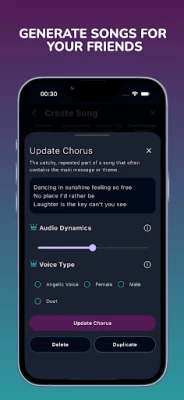 I am extremely disappointed in this app for my purpose. I want to generate music without lyrics. The app sometimes does this just as I want but half of my music is ruined with unwanted lyrics. I am offered a choice of male/female/auto voice but not NO VOICE and I just want to get music without lyrics. I have already tried 3 different ways to ask for help to stop wasting my purchased credits by turning off lyrics but the app developer has not responded. Maybe they will respond to this bad review?
