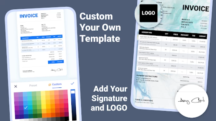 This is the best invoice editor I've ever found and you can just pay a one-time fee of $99 for life so they're having to pay monthly or yearly and it gives you lots of templates you can choose from and allows you to add signatures or request signatures, so its really a nice app