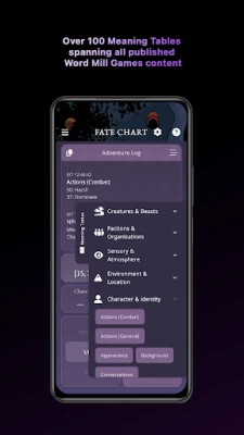 I absolutely LOVE this app. I bought the extras and everything lol The only thing I miss or would love, would be the ability to enter in my own dice rolls again for not only the fate chart, but all thr meaning tables as well. Overall, well worth it!