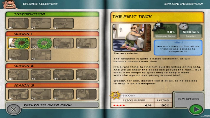 The controls are not good and frustrating to deal with. The fane is pretty repetitive, and more camera control would improve things. I also think if there was more to show the neighbour is bad, before you torment them, and play tricks on them it'd be better, so it doesn't feel like your just being horrible yourself. Like a back story on the terrible neighbour or something.