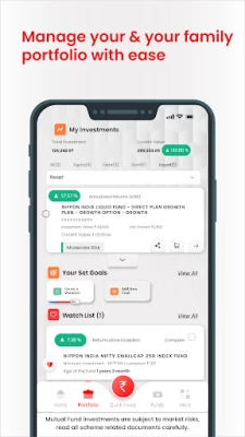 The app is user friendly. It provides overall instment performance of the fund as well as if the value of the fund is increased or decreased in previous day market. Most of the time, it is not showing portfolio tab wich makes it difficult to know value of each invested fund.
