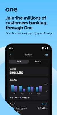 I love One and do overall like this app, but I have to rate 3 stars because it tells me my full balance between checking AND savings accounts...NOOO!! I spend into my savings EVERYTIME because of this, lol. You guys are the only banking app I've seen do it this way and it's the worst for savings in my opinion and should be changed. You can add all my saving accounts together, sure....but don't add them in with my checking account. It makes it very hard to actually save.
