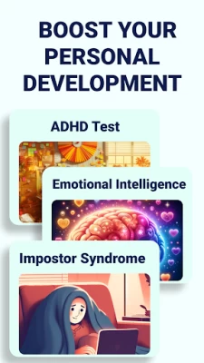 Mental wellness is crucial for a balanced life. Our app includes comprehensive psychological tests that help users assess their emotional intelligence, check for signs of depression with a specific "Am I Depressed?" test, and evaluate potential ADHD symptoms. These tests are essential tools for those reflecting on their mental health and seeking ways to improve it.
