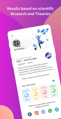 A good app, however my result completely contradicted my answers, specifically glaring on the E vs. I trait. Not only that but there are many grammar issues and questions that are worded poorly. The question regarding truthfulness rather than honest and discipline is worded in such a way that both options are the same option. App could use a lot of work.