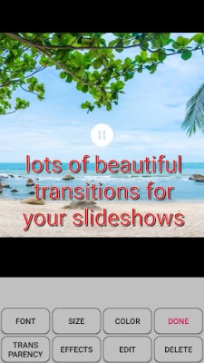 I have to say this is a really good slideshow maker, and runs smoothly,easy to learn, graphics are good as well and you can use full songs to videos something most other slideshow makers do not do unless you pay an arm and a leg for it,the only thing for now that I'd like to see in this app would be animated stickers to spruce up the pics alittle more but other than that it's a great app, so what you waiting for download it now.